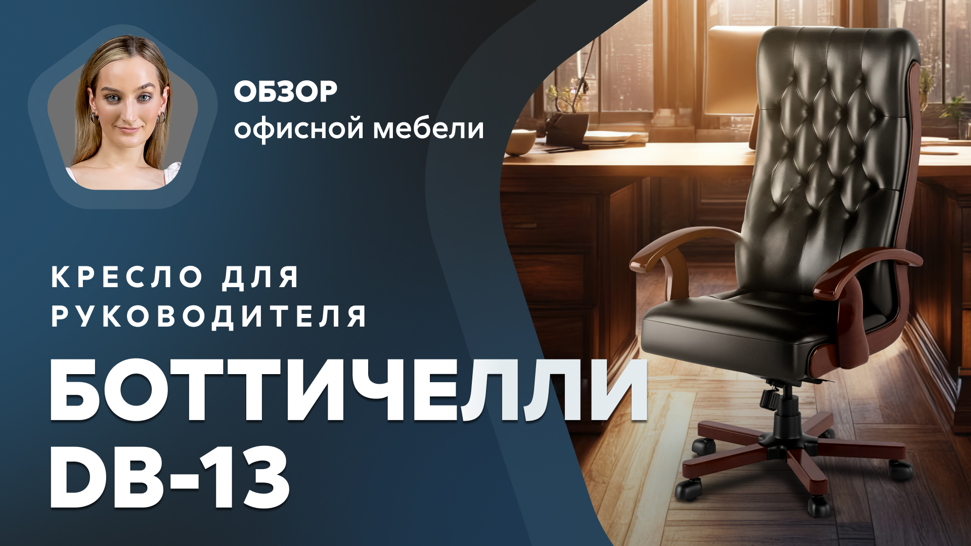 ► Кресло для руководителя «Боттичелли DB-13» в «Экспресс Офисе» — https://www.express-office.ru/catalog/chairs/kreslo-dlya-rukovoditelya/bottichelli/?utm_source=rutube&utm_medium=social&utm_campaign=video&utm_content=UTVlzZPoj0s&utm_term=first Изысканный классический дизайн кресла «Боттичелли DB-13» запомнится с первого взгляда. Модель изготавливается с поддержкой для спины. Деревянные накладки и массивные подлокотники подчеркивают статус владельца. Для сравнения: рост ведущей — 170 сантиметра. ► Другие кресла для руководителей — https://www.express-office.ru/catalog/chairs/kreslo-dlya-rukovoditelya/?utm_source=rutube&utm_medium=social&utm_campaign=video&utm_content=UTVlzZPoj0s&utm_term=second «Экспресс Офис» — один из крупнейших онлайн-гипермаркетов мебели и товаров для офиса и домашнего кабинета — предлагает покупателям уникальный сервис: - персонального менеджера в удобное время; - подборку моделей под любой бюджет; - бесплатную разработку плана расстановки мебели; - быструю доставку в 70 регионов России; - профессиональную сборку в сжатые сроки; - пять способов оплаты; - удобный технологичный сайт. ________________________________________________ Наш сайт: https://www.express-office.ru/?utm_source=rutube&utm_medium=social&utm_campaign=video&utm_content=UTVlzZPoj0s&utm_term=third ВКонтакте: https://vk.com/expressoffice YouTube: https://www.youtube.com/@official_expressoffice Дзен: https://dzen.ru/id/5e414030a4700360727f43c1