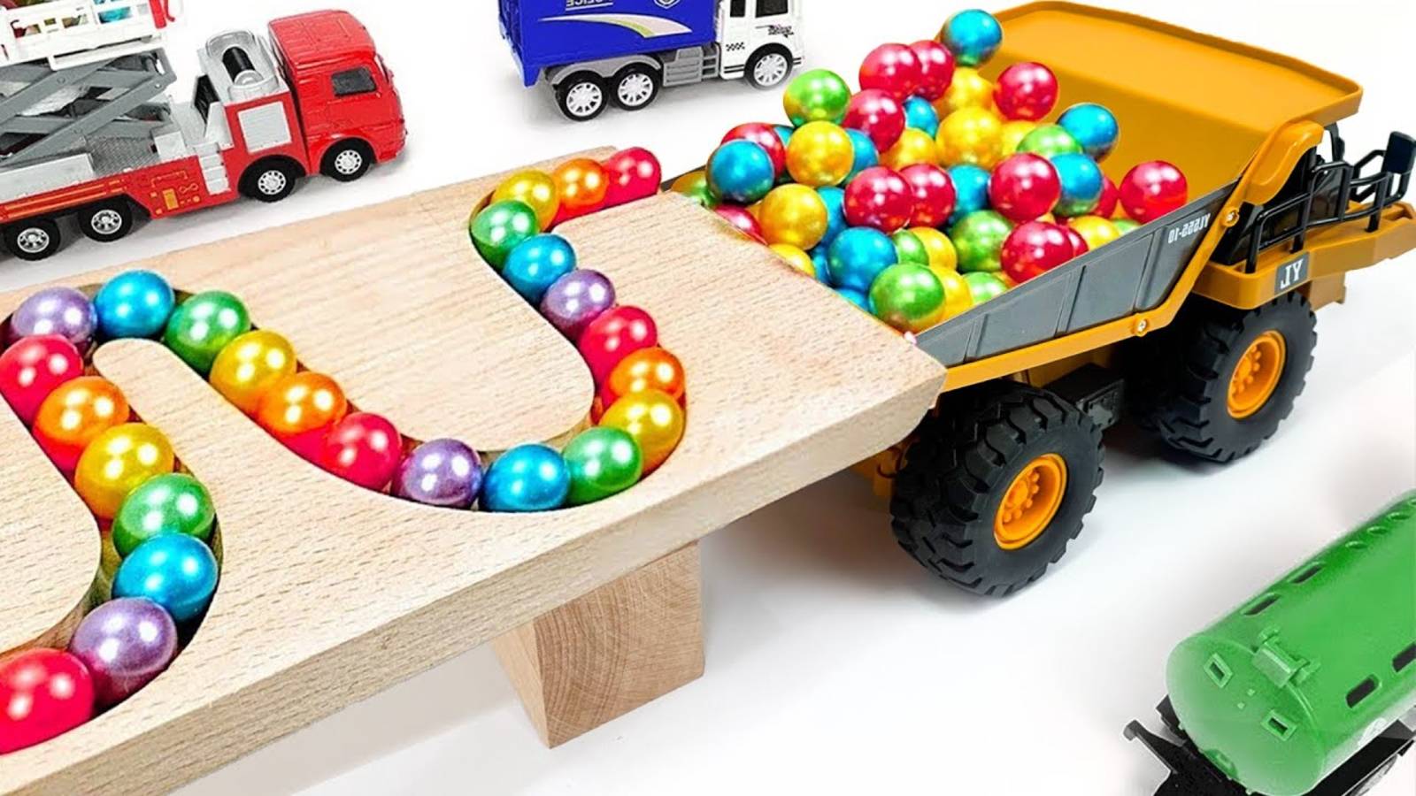 Гонка шариков волновой склон. Машинки для детей Мусоровоз Самосвал Скорая помощь Экскаватор Трактор
