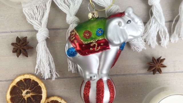 Стеклянная ёлочная игрушка СЛОНИК-ЦИРКАЧ, 10 см, 1082773