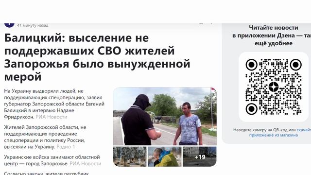 Балицкий_ выселение не поддержавших СВО жителей Запорожья было вынужденной мерой