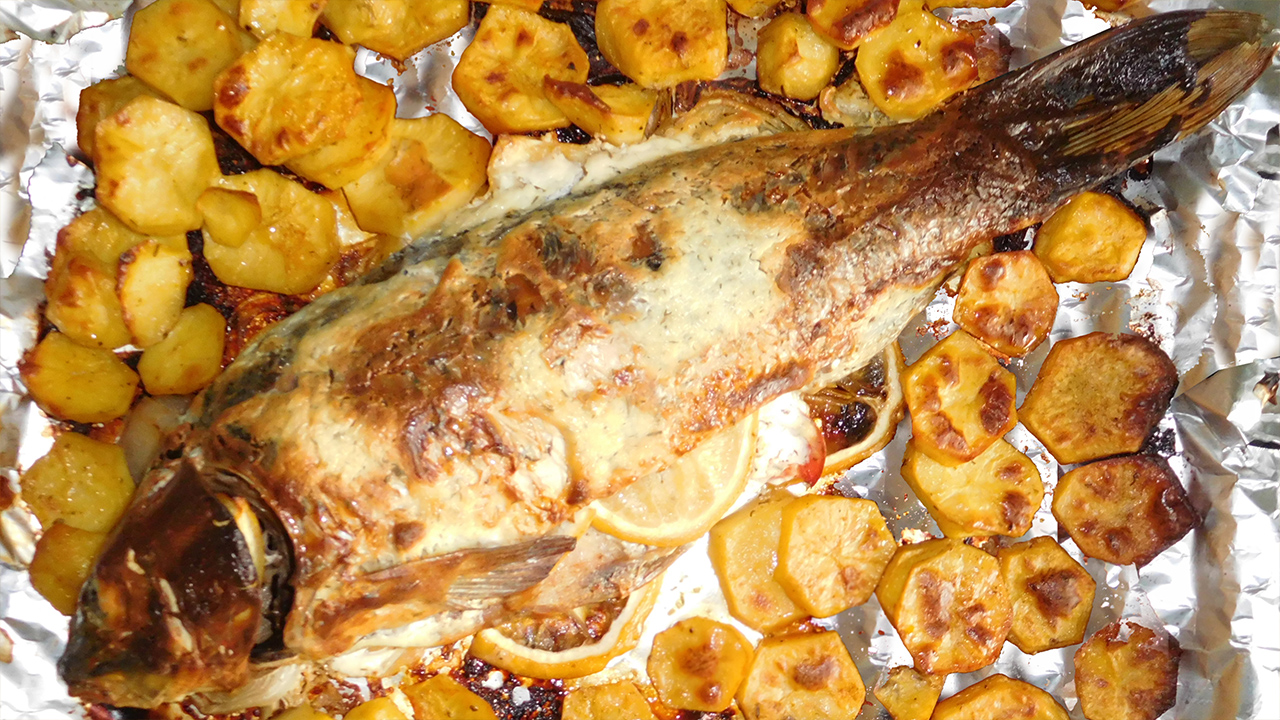 Сазан запеченный с картошкой в духовке