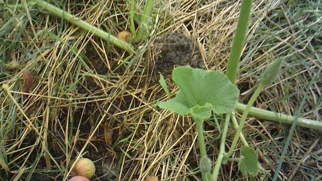 Обзор куста тыквы "Голиаф" проросшей в глубину сада