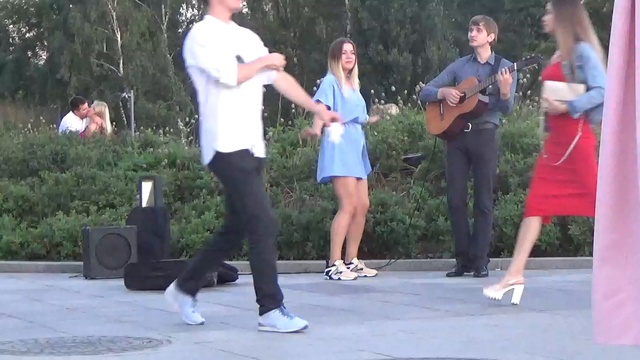 Парень играет Течет Волга