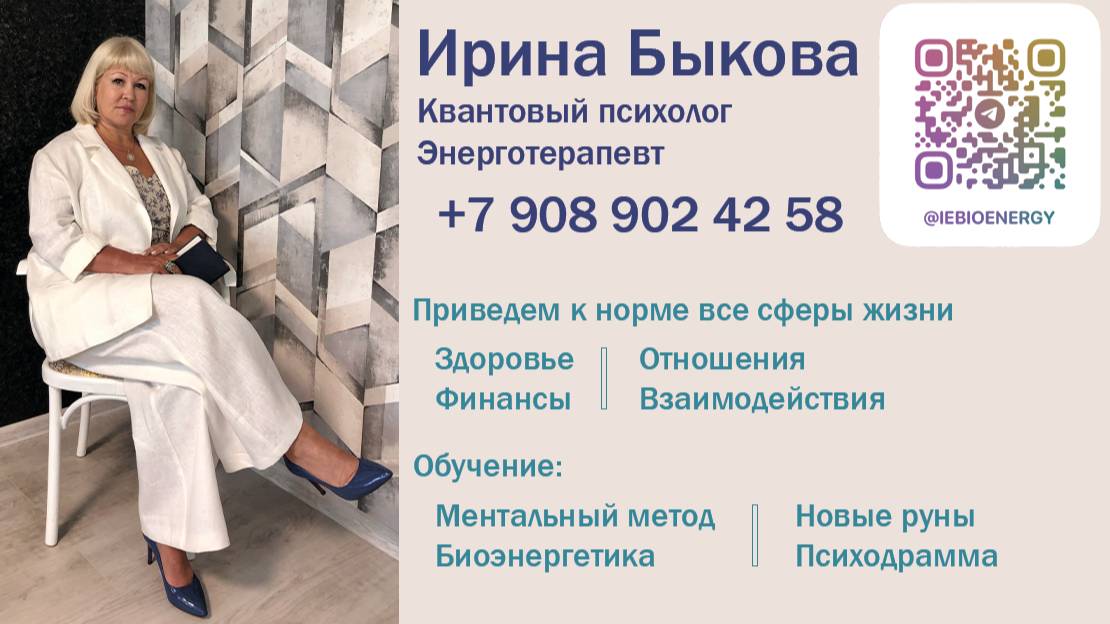 На эфире было 2 разбора, работа в поле и матрицах. Выход на лёгкие деньги из предназначения. Когда хотите: •улучшить качество жизни •добавить красок,легкости, ясности и радости? •наладить отношения дома •жить и достигать цели в ресурсе Когда как-будто не хватает сил и энергии... Всё время какие-то препятствия и претензии к близким За 20 лет практики по словам ﹥3.000 клиентов и ﹥200 учеников: •уходит тревога и негатив •увеличивается доход •и улучшается самочувствие БЕЗ многолетней терапии и БЕЗ выкачки денег Клиенты получили результаты на моих программах, потом становятся учениками, внедряют эти методы в свою жизнь, работу и карьеру, увеличивают доход в 10 раз Я Ирина Ефименко (Быкова) - эксперт по быстрым методам работы с подсознанием Подробнее обо мне: https://t.me/IEBioEnergy/1714