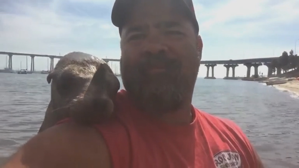 Тюлень запрыгнул на лодку к этому мужчине)
