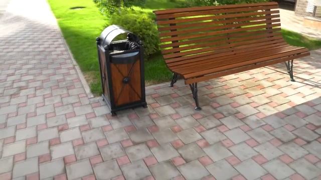 Массивные парковые урны УМл-4кп квадратные, с крышкой и пепельницей, на чугунных опорах, с оцинкованным вкладышем 54 литра. Оцинкованный вкладыш пепельницы. Скрытое крепление к мостовой. Хорошо окрашены металл и дерево. Массивная и прочная урна для городских улиц.