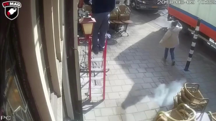 Сегодня в центре Амстердама, из за короткого замыкания почти 30.000 домов остались без электричества. П.С. чувак, который в кадре, будет мыть штаны от 30 оттенков коричневого...
