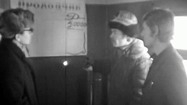 1974 год. Нижневартовск. Комсомольк бригада Владимира Глебова обсуждает соцобязательства.