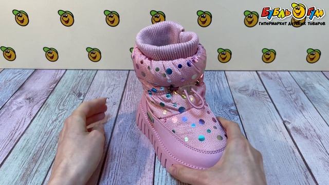 332861 Сапоги Pasito дутики с мембраной зимние шерстяная стелька шнурок для обхвата ноги розовые