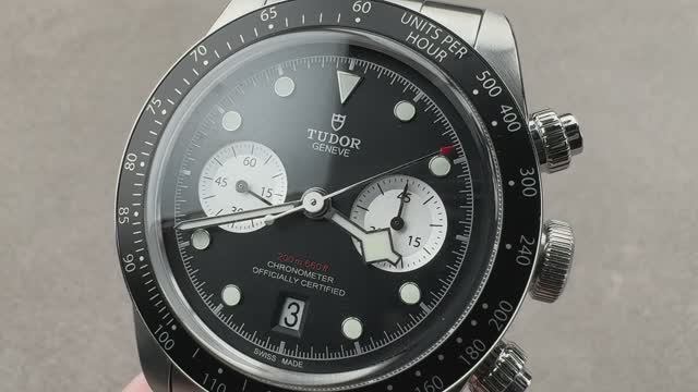 *перевести видео можно в Яндекс браузере Хронограф Tudor Black Bay (79360N) выполнен из нержавеющей стали толщиной 41 мм и окружен черным циферблатом "Обратная панда" со вставкой из черного анодированного алюминия на браслете с заклепками из нержавеющей стали и раскладывающейся пряжкой. Часы Tudor Black Bay Chronograph оснащены такими функциями, как часы, минуты, малая секундная стрелка, дата, хронограф и тахиметр. Толщина этих часов Tudor также составляет 14,6 мм, а расстояние от выступа до выступа составляет 50,1 мм. Для получения более подробной информации ознакомьтесь с полным обзором хронографа Tudor Black Bay 79360N-0001.