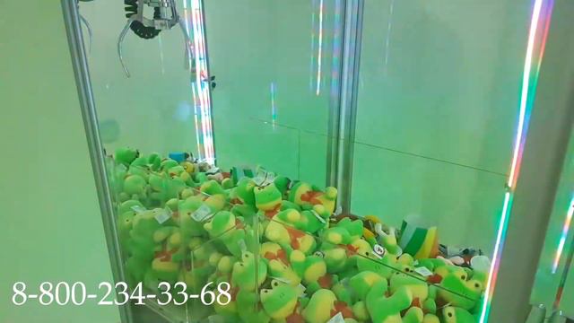 Подробнее: https://robotail.ru/p428611247-hvataj-igry.html За одну оплату дается три игры !!! В аппарате три отсека - для игрушек 10-15 см, брелоков 5-7см, и конфет. Правила В аппарате 3 отсека призов и в каждый отсек есть шанс выиграть. В первой игре - управляя джойстиком надо навезти клешню в малый левый отсек с конфетами и нажать кнопку. В первой игре клешня настроена на 100% захват. (кран ходит только в перед-назад, вдоль отсека). После захвата клешня идет к призовому уголку и раскрывается. Во второй игре, надо схватить игрушку в большом отсеке. Кран работает по программе захвата которая случайным образом достает игрушку. Клешня едет к призовому уголку и раскрывается. После кран направляется в крайний правый угол. В третьей игре, кран настроен на 100% захват, играть можно только в малом правом отсеке. Надо схватить за выделенное время игрушку/брелок и попасть в призовую лузу. (кран ходит только в перед-назад, вдоль отсека) Настройка Время игры: в каждом отсеке - 20,30, 40 секунд. Процент выигрыша: в большом отсеке - 1/10, 1/15 1/20, Стоимость игры: 20, 30, 50, 100 рублей Характеристики: Высота: 180 см. Ширина:100 см. Глубина с тумбочкой: 100 см. Вес: 125 кг. Музыка Наклейки Освещение Каретка-клешня Монетоприемник Три отсека для призов Плата - контроля выручки, расхода игрушек, статистика игр Наполнение: 150 игрушек-большой отсек, 100 брелков-отсек с лузой, 300 конфет - третий отсек Генератор случайных чисел: ДА Сертификат ВНИИМС - НЕТ Теги: развлекательный автомат,детский атракцион,аттракцион поймай игрушку,автомат для парков,автомат для развлекательных центров,автомат для бизнеса,аттракцион хватай-ка,автомат с игрушками
