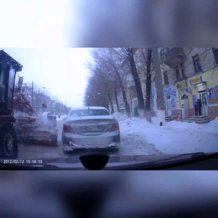 Трактор задел ковшом автомобиль, стоявший на дороге. #уборкаснега #авто #аварии
