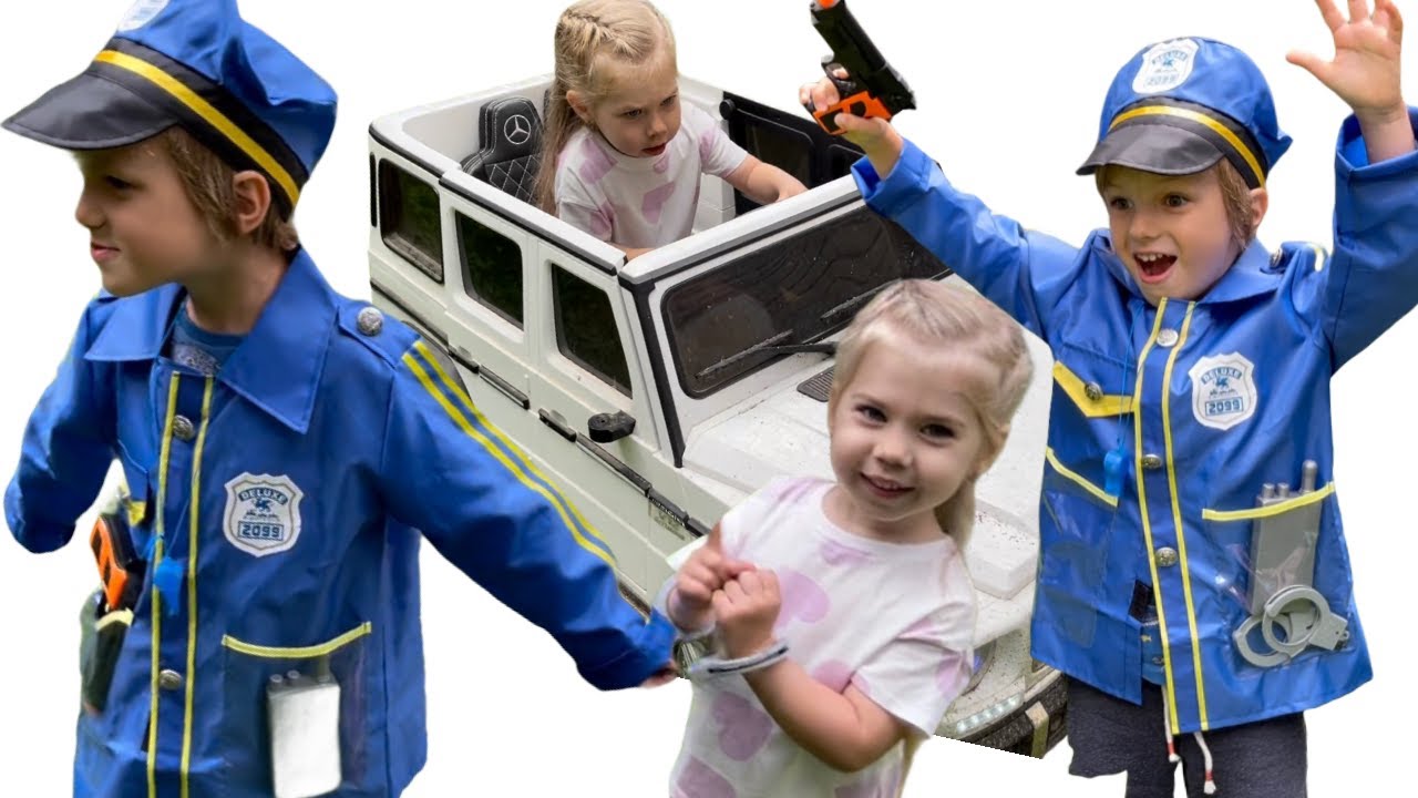 Ева играет с друзьями Воришка Полицейский Механик и Доктор ИГРЫ на улице