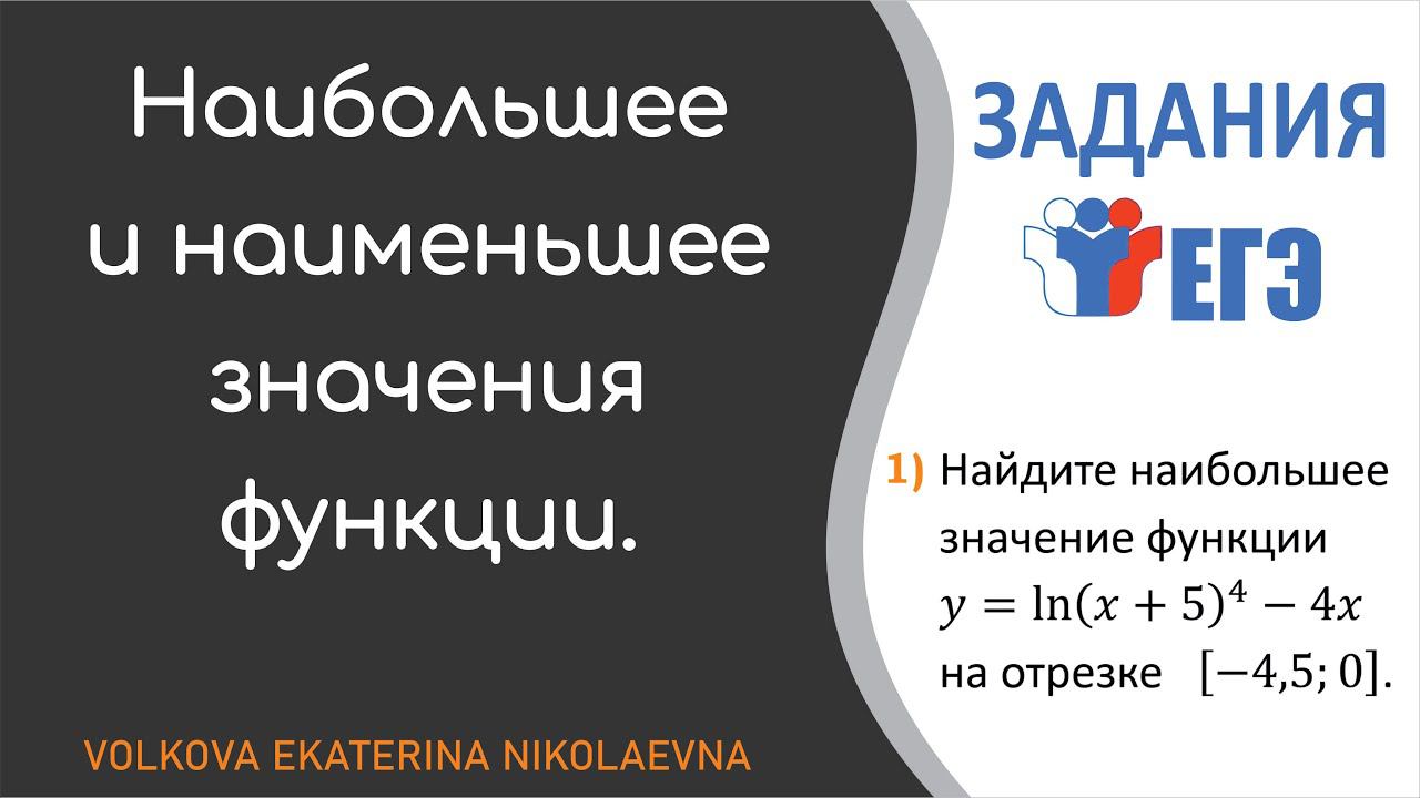 Наибольшее и наименьшее значения функции на отрезке. Решение заданий ЕГЭ (профильный уровень). Производная в ЕГЭ. 1 курс. Техникум, колледж. Повторение. 2 курс. Техникум, колледж. 10-11 класс. Тайминг: 00:00 Введение. 00:10 Задание 1. 07:38 Задание 2. 12:11 Задание 3. Поддержать автора: https://yoomoney.ru/to/4100118156988006 Ссылка на мой Яндекс Дзен "Волкова Е.Н. Понятная математика. Техникум и колледж." - https://dzen.ru/video/watch/649056b438c1ca45304cf81e
