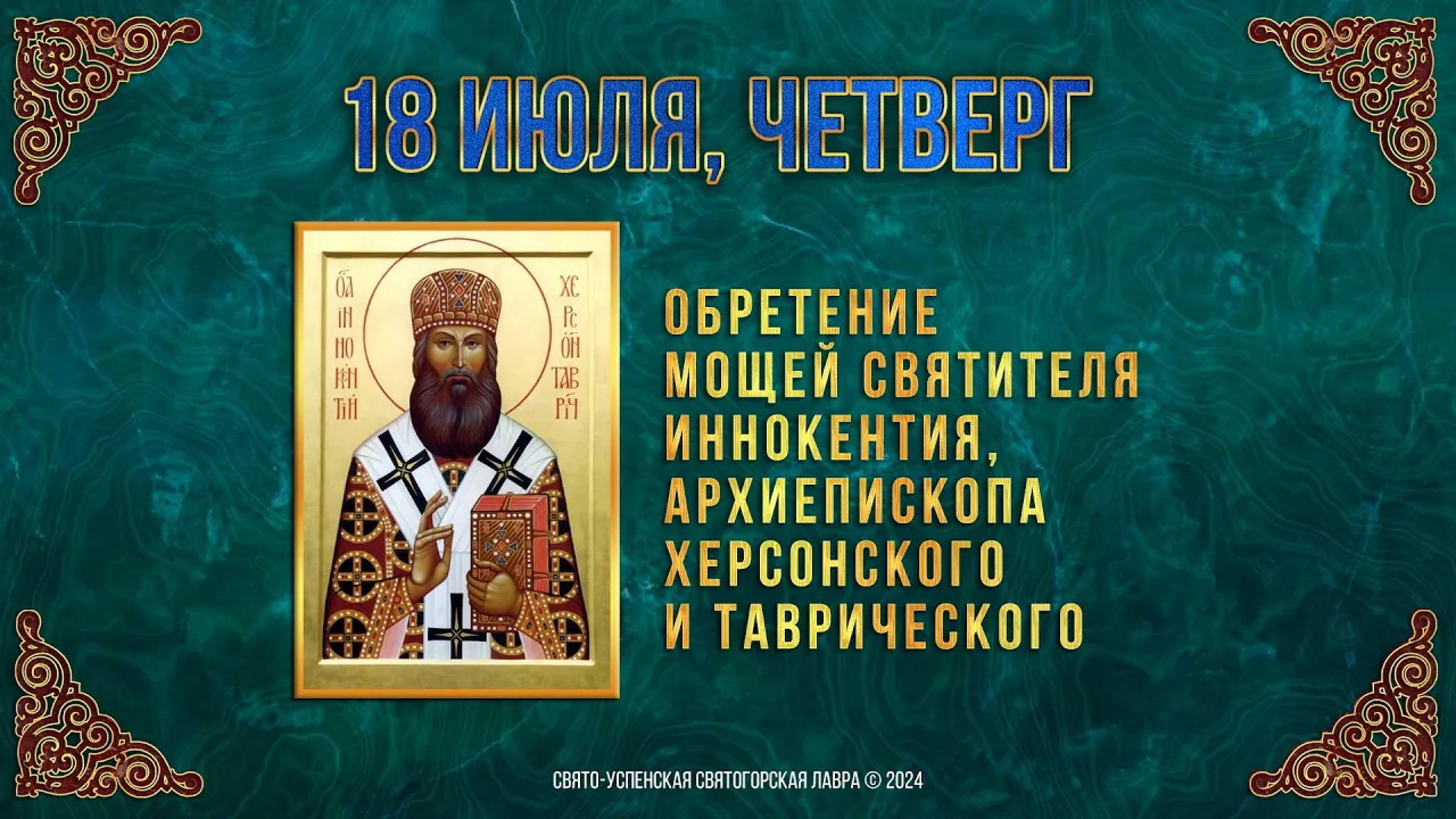 Обре́тение мощей свт. Иннокентия, архиеп. Херсонского и Таврического. 18 июля 2024 г. Календарь