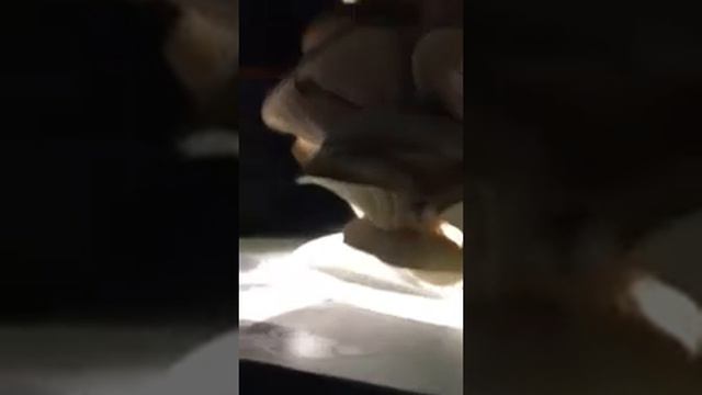 Back to the roots oyster mushroom mini farm spores being released. It made a dusty mess on my desk
