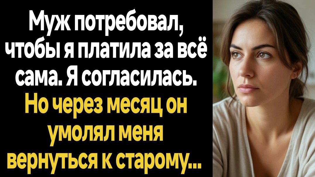 ИСТОРИИ ИЗ ЖИЗНИ/Муж потребовал, чтобы я платила за всё сама. Я согласилась. Но через месяц он умоля