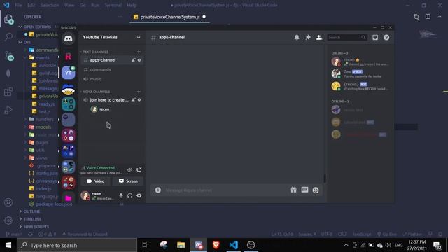 #65 Private Voice Channel Generator System / Join To Create Channel | discord.js tutorials