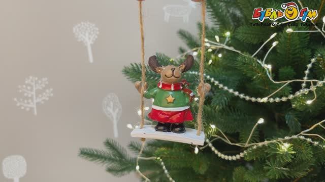 332284 Елочное украшение Новогодние персонажи на качелях ретро 7см в ассортименте