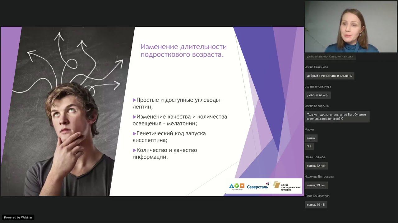 Эту важную тему раскрыла для родителей Наталия Лучкина, психолог-консультант, действительный член общероссийской профессиональной психотерапевтической лиги (г. Москва). Вопросы: 1. Психологические и физиологические изменения в подростковом возрасте. 2. Изменения в эмоциональной сфере юношей-подростков. 3. Изменения в поведенческой сфере юношей-подростков. 4. Психосексуальное развитие юношей. Формирование образа мужчины, отцовства и супружества. Справка: вебинар состоялся в рамках проекта «Родительское просвещение», реализуемого с использованием гранта Президента Российской Федерации, предоставленного Фонд президентских грантов.