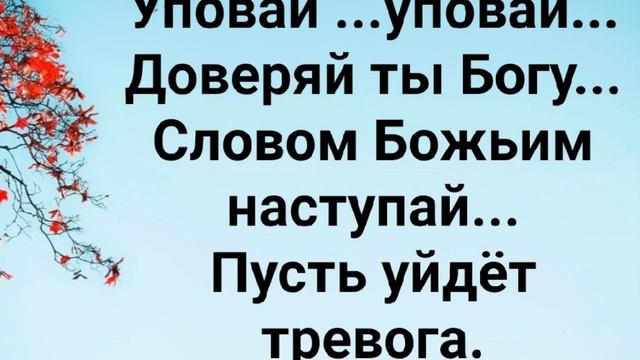 ХРИСТИАНСКИЕ ПЕСНИ ДЛЯ ХВАЛЫ И ПОКЛОНЕНИЯ ПРОСЛАВЛЕНИЯ ВООДУШЕВЛЕНИЯ ЕВАНГЕЛИЗАЦИИ #господь#музыка#христианская_музыка#музика#христианскиепесни#бог#христианскиестихи#любовь#христианство#стихи#песня#песни#иисус#иисусхристос#иисусмойбог#иисус_христос#иисусбог#иисусгосподь#хвалы_и_поклонения#хваление#хвала#прославление "МНЕ ТАК ПРИЯТНА ИЗ УСТ ТВОИХ СЛАДОСТЬ!" СЛОВА, МУЗЫКА: ЖАННА ВОЛКОВА-ВАРЛАМОВА Припев: Уповай ...уповай... Доверяй ты Богу... Словом Божьим наступай... Пусть уйдёт тревога. Как гармонично Слово Божие... Как сладка речь в Устах Его. В Священной Книге Воля Отца изложена... Напутствие дано для блага моего. Припев: Уповай ...уповай... Доверяй ты Богу... Словом Божьим наступай... Пусть уйдёт тревога. О, мой, Отец, на сердце так тревожно... Прошу Тебя груз убери от сердца моего. Пусть всё уйдёт из сердца, то что ложно... Даст место для Слова Твоего. Припев: Уповай...уповай... Доверяй ты Богу... Словом Божьим наступай... Пусть уйдёт тревога. О, мой, Отец, на сердце так тревожно... Прошу Тебя груз убери от сердца моего. Пусть всё уйдёт из сердца, то что ложно... Даст место для Слова Твоего. Припев: Уповай ...уповай.. Доверяй ты Богу... Словом Божьим наступай... Пусть уйдёт тревога. Мне так приятна из Уст Твоих Сладость... Когда Ты говоришь ко мне, Отец. Слово Твоё приносит мне Радость... Это подобно периоду - Детств. Припев: Уповай ...уповай.. Доверяй ты Богу... Словом Божьим наступай... Пусть уйдёт тревога. Как мне хорошо, когда Ты меня́ учишь... Ведь Слово Твоё даёт мне жизнь. Ты мне говоришь, потому что любишь... Хочешь чтобы был я чист. Припев: Уповай ...уповай... Доверяй ты Богу... Словом Божьим наступай... Пусть уйдёт тревога. Уповай ...уповай... Доверяй ты Богу... Словом Божьим наступай... Пусть уйдёт тревога. 04.10.2024 Жанна Волкова-Варламова