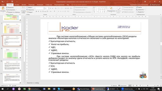 Компания «Кодерлайн» провела вебинар «Корректировки в уведомлении о ЕНП и прочие новости по 1С:БП в 2023» Ведущая: Гардышева Галина - консультант-аналитик 1С:ЕRP Целевая аудитория для бухгалтеров, пользователей и специалистов ИТ-подразделений компаний различных отраслей. Описание За прошедшие 6 месяцев уже немного утихли споры по поводу реорганизации учета, слияния фондов и других революционных изменений в системе учета и налогообложения. Но тем не менее постоянно выходят уточнения и корректировки по разным наиболее конфликтным ситуациям. Самый «горячий» раздел-уплата налогов и взносов, и соответственно подача уведомлений в налоговые органы. Сегодня поговорим об этом на примере «1С:Бухгалтерия Предприятия 3.0» Программа 1. Новое в «1С: Бухгалтерии 8» - обзор актуальных обновлений (релизы 3.0.137 – 3.0.139); 2. Первоочередной зачет ЕНП в счет уплаты НДФЛ; 3. Сальдо по ЕНС в Мониторе налогов и отчетности; 4. Корректировка уведомления отрицательными значениями; 5. Возвраты по отчетам Wildberries и прочих комиссионеров; 6. Предоставление скидок и бонусов в розничной продаже.