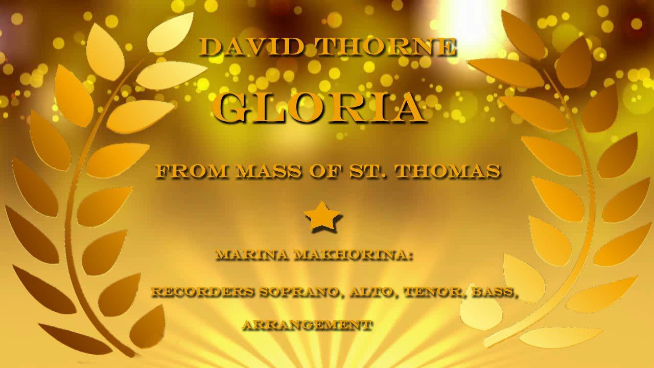 David Thorne. Gloria from mass of St. Thomas Марина Махорина - блокфлейты сопрано, альт, тенор, бас, аранжировка. Текст "Gloria" Glory, glory to God. Glory to God in the highest. Glory, glory to God. And on earth, peace to people…people of goodwill. We praise you, we bless you, we adore you… we glorify you. We give you thanks for your great glory. Lord God, heavenly King, God almighty Father. Lord Jesus Christ only begotten son Lord God, Lamb of God son of the father. You take away the sins of the world, have mercy on us. You take away the sins of the world, receive our prayer. You are seated at the right hand of the Father…have mercy on us. For you alone are the Holy one, you alone are the Lord. You alone are the most high, Jesus Christ. With the Holy Spirit, in the glory of God the Father. Amen. © Марина Махорина