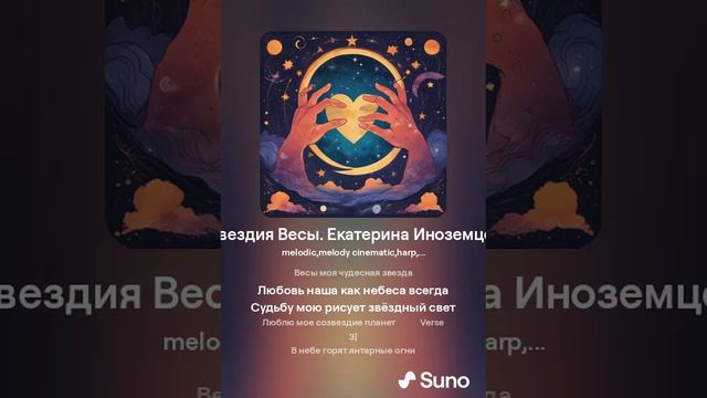 [Chorus] Весы моя чудесная звезда Любовь наша как небеса всегда Судьбу мою рисует звёздный свет Люблю мое созвездие планет [Chorus] Весы моя чудесная звезда Любовь наша как небеса всегда Судьбу мою рисует звёздный свет Люблю мое созвездие планет