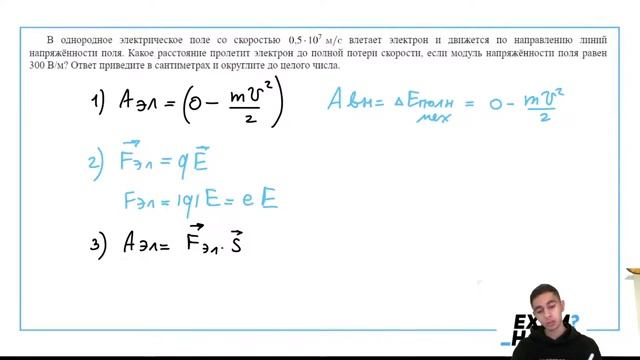 В однородное электрическое поле со скоростью 05107 мс влетает электрон и движется по - 25193