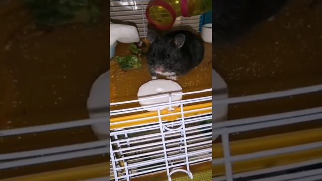 Сирийский хомяк Пампушка забавно поиграла с соляным камнем, 2023-24г.г. #хомяки