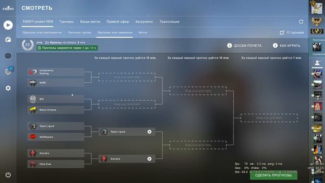 Все еще пытаемся вместе получить золотую медаль за прогноз на мажоре Faceit London 2018. Этап чемпионов или плэй офф (3 часть.) в counter strike: global offensive