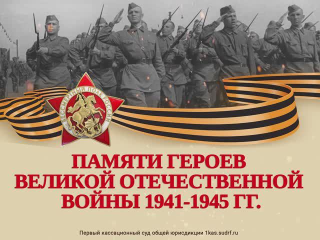 С целью увековечивания памяти участников и героев Великой Отечественной войны 1941-1945 гг. судьи и государственные гражданские служащие Первого кассационного суда общей юрисдикции приняли участие в онлайн-шествии «Бессмертный полк» - мероприятии, которое объединяет всех жителей нашей страны. На слайдах размещены хранимые судьями, работниками аппарата суда и их семьями истории ветеранов – истории великого мужества, великого самопожертвования, триумфа воли народа. Полное или частичное использование информации возможно только со ссылкой на источник.