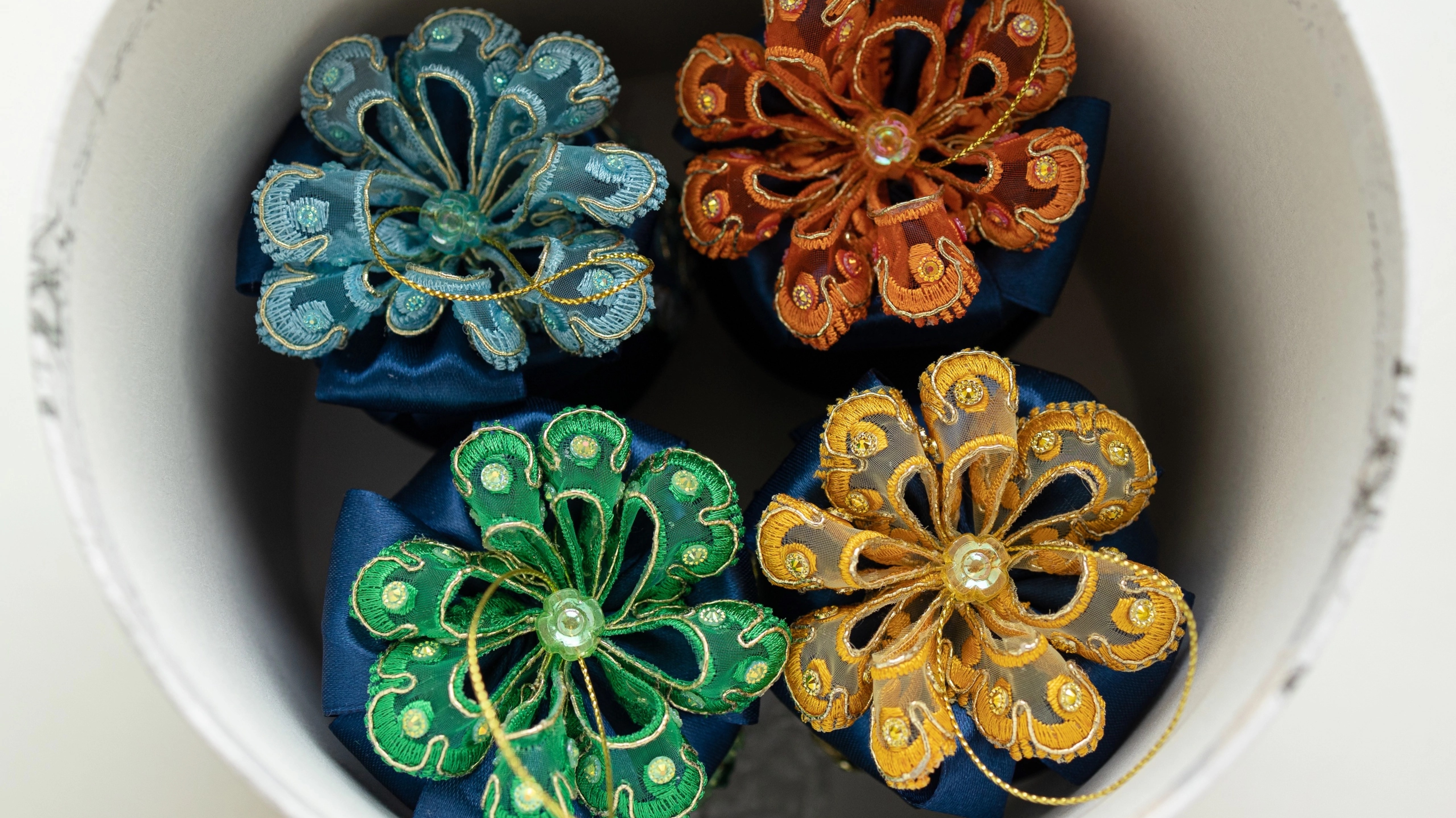 Создание новогоднего украшения. Декор китайского шара бархатом, кружевом, стразами