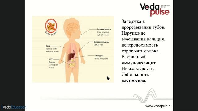 В этом видео: - Что такое глютен. Продукты, богатые глютеном; - Что такое глютеновая болезнь или целиакия; - Причины глютеновой болезни, основные проявления и осложнения; - Диетотерапия: особенности диеты при непереносимости глютена; - Индексы "ВедаПульс" при глютеновой болезни. Эксперт: Арчибасова Елена Алексеевна, к.м.н., врач, доцент кафедры нормальной физиологии НГМУ
