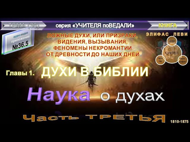 ...ФЕНОМЕНЫ НЕКРОМАНТИИ ОТ ДРЕВНОСТИ ДО НАШИХ ДНЕЙ (3 ч)- главы 3 ДУХИ В БИБЛИИ (ДУХИ В ЕВАНГЕЛИИ. - ДЕМОНЫ, ОДЕРЖИМЫЕ И ПРИВИДЕНИЯ, - Элифас Леви (1810-18750). Представляем вашему вниманию последнюю из работ, издававшихся Элифасом Леви прижизненно - «Наука о духах». Это впервые переведенный на русский язык труд, который поможет проникнуть в историю изучения духов. «Науку о духах» Элифас разделил на три части. В первой речь идет о «духах» евангельских легенд. Вторая часть посвящена духам как существам, т.е. демонам, душам усопшим и прочим. В третьей части Элифас переходит к рассмотрению спиритических феноменов, некромантии, начиная со случаев, описанных в Библии, и заканчивая современным спиритизмом. Книга будет полезна всем, интересующимся классическим оккультизмом, в особенности, сторонникам французской оккультной Школы.