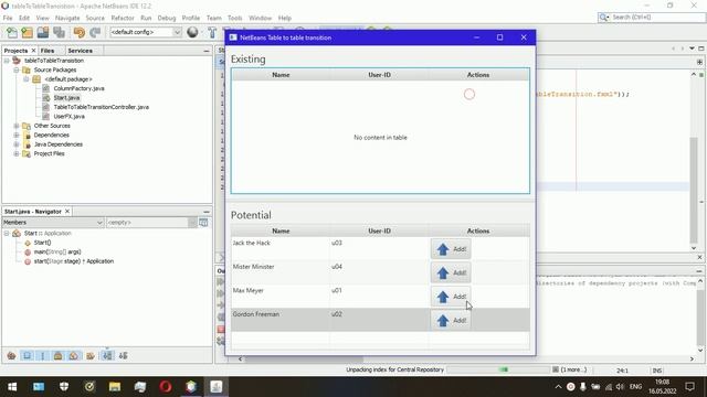 NetBeans Table to table transition.