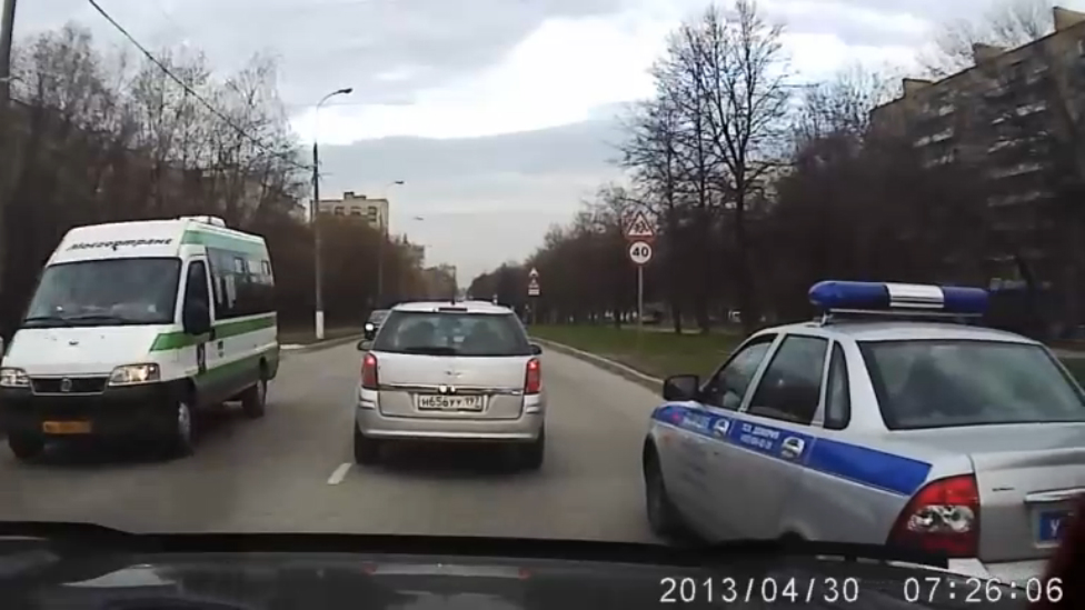 Московскому водителю пришла моментальная карма в виде ДПС, за опасное вождение.