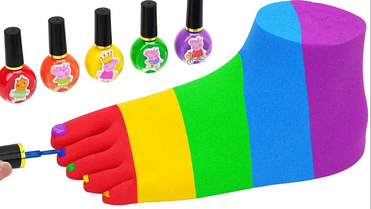 Увлекательное видео о том, как сделать радужные стопы и ногти на ногах с помощью кинетического песка и лака для ногтей ASMR