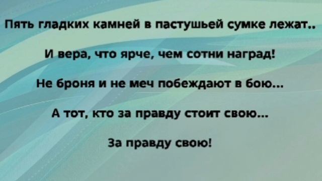 ХРИСТИАНСКИЕ ПЕСНИ ДЛЯ ХВАЛЫ ПОКЛОНЕНИЯ ПРОСЛАВЛЕНИЯ ЕВАНГЕЛИЗАЦИИ ДУХОВНОГО РОСТА ПРОБУЖДЕНИЯ ВОЗРОЖДЕНИЯ #господь#музыка#христианская_музыка#музика#христианскиепесни#бог#христианскиестихи#любовь#христианство#стихи#песня#песни#иисус#иисусхристос#иисусмойбог#иисус_христос#иисусбог#иисусгосподь#хвалы_и_поклонения#хваление#хвала#прославление#духсвятой#духовныйрост#духовноепробуждение#духовность#евангелие#евангелизация#евангельскаявесть#духовный_рост#пробуждение#рождество#рождествохристово#божий#божийнарод#божьеслово  #ХристианскаяПесня #ХристианскоеПоклонение #ХристианскаяНоваяПесня #ПастырьМоейДушы #ХристианскаяМузыка #ПесняСлавы #Иисус #ЛюбовьБожья #ХристианскиеТексты #СлаваГосподу #ВераИПоклонение #ВечнаяЛюбовь #RussianChristianSong #RussianChristianWorship #RussianChristianMusic #RussianWorship #NewRussianChristianMusic #RussianChristianMusic #RussianSongOfPraise #Jesus #GodsLove #ChristianLyrics #GloryToGod #RussianFaithAndWorship #EternalLove #Пасха #Воскресение #ХристосВоскрес #пробуждение #возрождение #КРЕСТ https://stihi.ru/avtor... "ПЯТЬ ГЛАДКИХ КАМНЕЙ!" СЛОВА, МУЗЫКА, ОБРАБОТКА:  ЖАННА ВОЛКОВА-ВАРЛАМОВА https://stihi.ru/2025/10/07/7721 Стихи Жанна Юрьевна Волкова-Варламова Вступление: Солнце встаёт над долиной Эла...  И снова страх и ему нет предела.  Из вражьего стана выходит страшный гигант...  В его голосе - яд, а в глазах - бриллиант.  1 Куплет Тяжёлый доспех у него и огромное копьё...  Он сеет вокруг только зло и враньё.  Кто смелый, сразитесь! -  бросает он клич...  Но каждый молчит, словно пойманная дичь.  И только пастух, сердцем юн и горяч...  Не видит причин быть в кругу неудач.  Припев: Пять гладких камней в пастушьей сумке лежат..  И вера, что ярче, чем сотни наград!  Не броня и не меч побеждают в бою...  А тот, кто за правду стоит свою...  За правду свою!  2 Куплет Царь Саул говорит: - Ты безумец, дитя!  Я льва побеждал, за овцами следя.  И Бог, что спасал меня в дикой глуши Поможет и здесь, ты его не страшись!  Без лат и без шлема, с простою пращой Он вышел с врагом на решительный бой!  Припев: Пять гладких камней в пастушьей сумке лежат..  И вера, что ярче, чем сотни наград!  Не броня и не меч побеждают в бою...  А тот, кто за правду стоит свою...  За правду свою!  Музыкальная пауза Бридж Ты с палкой идёшь? - великан хохотал Я с именем Бога! - Давид отвечал И камень, как молния, воздух пронзил...  И тот, кто был страшен, навеки застыл!  Падение басса О, камнем удар...  И лоб  разбит в прах!  В округе затаился страх!  Припев: Пять гладких камней в пастушьей сумке лежат..  И вера, что ярче, чем сотни тысяч наград.  Не броня и не меч побеждают в бою...  А тот, кто за истину стоит в строю...  За Истину - в Божьем строю!!!  Заключение: Упал Голиаф, и закончился бой...  Мальчишка с пращою стал новый герой!  И войско бежало, теряя свой флаг...  Так именем Божьим сражён был враг!!!  07.10.2025 Жанна Волкова-Варламова