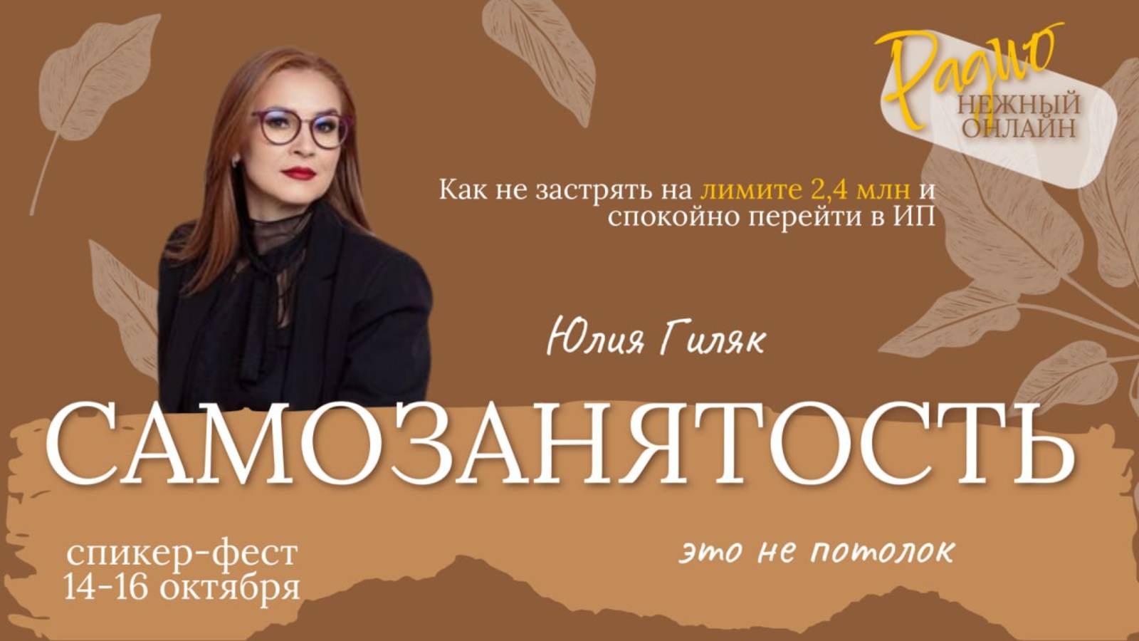 Самозанятый — это старт, но не потолок. ⤵ Юлия Гиляк (https://t.me/ugilyak_pronalogi) Как не застрять на лимите 2,4 млн и спокойно перейти в ИП без страха и паники Описание спикера для афиши Юлия Гиляк (https://t.me/ugilyak_pronalogi) — аттестованный налоговый консультант и бухгалтер-практик с 18-летним опытом. Основатель бухгалтерского агентства «Гиляк Про Налоги», спикер деловых мероприятий для предпринимателей. Помогает женщинам-предпринимателям навести порядок в цифрах, понять налоги и выстроить систему, где деньги работают по любви, а не из страха. 👌 17 лет практики в бухгалтерии 👌 Более 100 млн рублей законно сэкономленных налогов 👌 125 консультаций за 2024 год 👌 Вернула клиенту 8 млн рублей НДС с единого налогового счёта всего за 2 дня «Налоги по правилам. Деньги — по любви.» Говорит о сложных вещах простыми словами и помогает предпринимателям почувствовать уверенность в своём бизнесе. Анонс для публикации (на сайт фестиваля, Telegram, соцсети)😞 Как понять, что вы выросли из самозанятости — и пора переходить на следующий уровень? На выступлении 🎙Юлии Гиляк вы узнаете: 🟡 почему лимит 2,4 млн рублей — не потолок, а точка роста; 🟡как оформить ИП без нервов, отчётность без ужаса и налоги без штрафов; 🟡как сделать первые шаги к финансовой структуре, где цифры становятся поддержкой, а не тревогой. ❤Подписывайтесь на Telegram-канал Юлии 👉 Гиляк ПРО налоги (https://t.me/ugilyak_pronalogi) Там — живые кейсы, разборы и честные разговоры о налогах без бюрократии и паники. 🔻🔻🔻🔻🔻🔻🔻 Регистрируйтесь и получайте подарки от наших экспертов! ⬇️⬇️⬇️⬇️⬇️ ЗАРЕГИСТРИРОВАТЬСЯ https://app.leadteh.ru/w/eu7cV ______________________________________ 🎙Если вы хотите стать спикером радио, попасть на подкаст, открыть свою передачу, пишите 👉 сюда https://t.me/m/sApQQFV0ZDgy