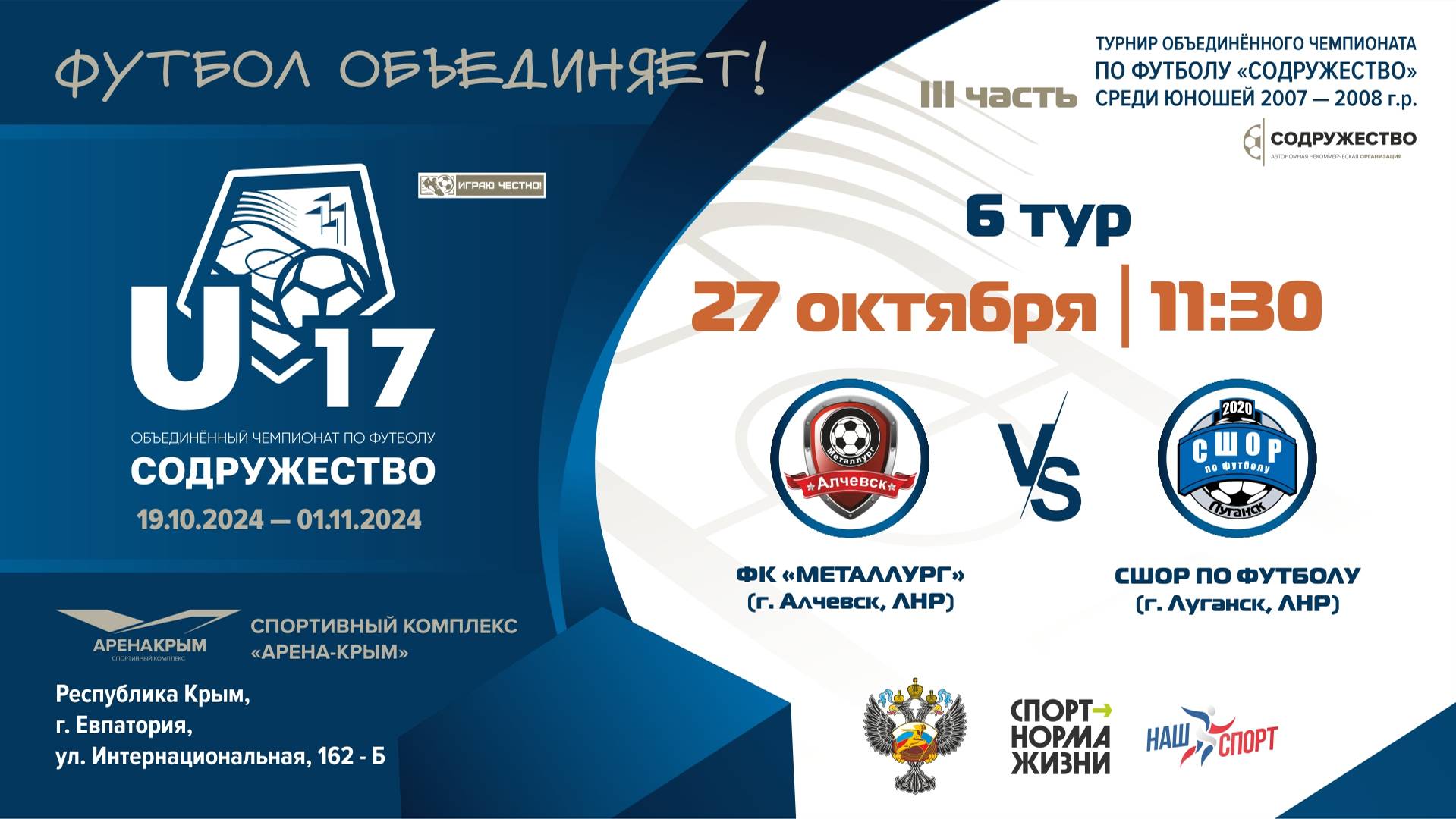 6 ТУР | U-17 | ФК "Металлург" (U-17) (г. Алчевск, ЛНР) vs ГБУ ДО ЛНР «СШОР по футболу» (г. Луганск,