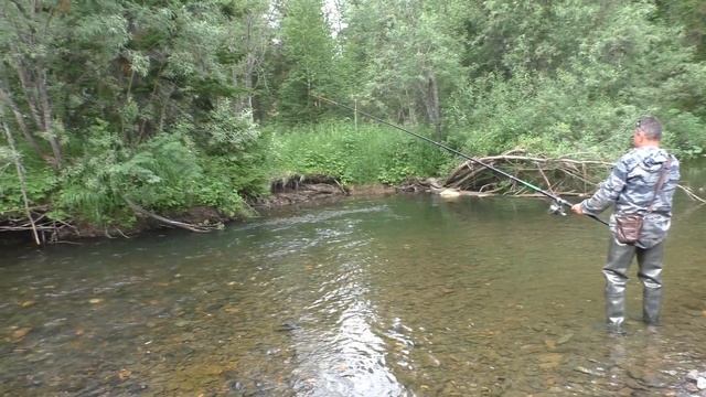 173 Серия Поймал Рыбу Хариус Обманка Оса Удочка Поплавок Тайга Рыбное место Ива