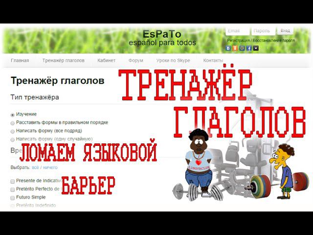 Записывайтесь к нам на бесплатное занятие! Такого обучения Вы еще не встречали! Наша программа - уникальное сочетание современных технологий, живого языка и высокого профессионализма преподавателей: https://espato.ru/maestro/ Это новая технология, только наша платформа позволяет выстроить буквально каждое занятие под Вас и Ваши интересы - убедитесь сами, приходите на пробное! Если Вам интересен испанский, Вы не пожалеете, что решили учить его с нами. Как правильно пользоваться тренажером глаголов? Почему так важно довести глаголы в испанском до автоматизма. Основные возможности нашего тренажера. Новая, улучшенная, версия тренажёра на нашем сайте: http://espato.ru/trainers/verbos.php