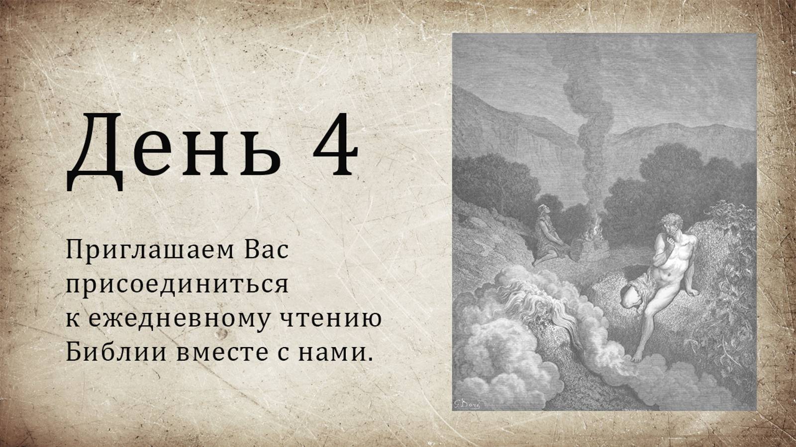 День 4 - ( Быт 7; Быт 8; Пс 9; Пс 10; Мф 6 )