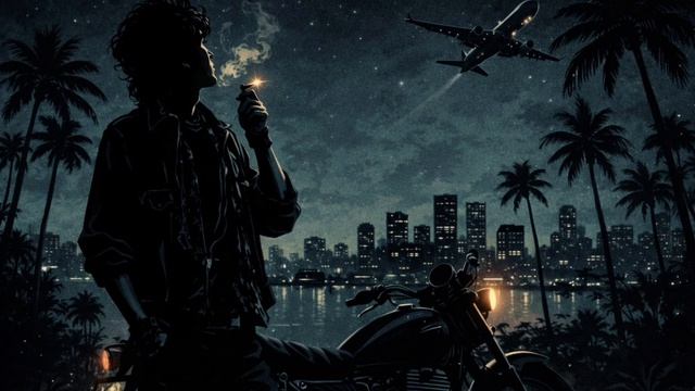 Герой мчится сквозь пальмы. ТЕНИ дороги сужают путь для двоих.