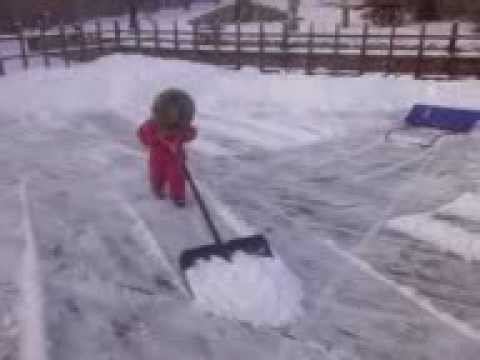 Трехлетняя Лидочка чистит двор от снега