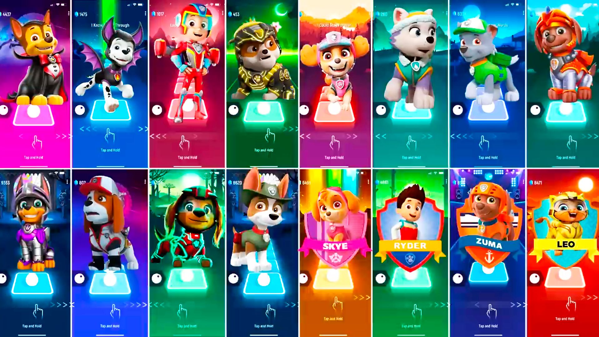 Мультики для Детей Щенячий Патруль Tiles Hop - ГОНЩИК, МАРШАЛЛ, РАЙДЕР, КРЕПЫШ, СКАЙ, ЭВЕРЕСТ
