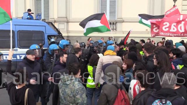 Corteo per la Palestina a Firenze, studenti caricati dalla polizia I ragazzi hanno provato ad avvicinarsi al consolato americano CRONACA (Firenze). Il corteo per la Palestina a Firenze è arrivato fino al consolato americano, dove ci sono stati scontri tra gli agenti di polizia e i ragazzi, che provavano a oltrepassare il cordone di sicurezza. Slogan come 'Palestina libera', 'Israele terrorista' e 'Usa terrorista' sono stati intonati per tutto il percorso. (Emanuele De Lucia/alanews) ---- Trascrizione generata automaticamente ---- No no sono tutti insieme -