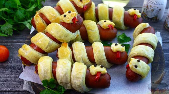 Тематическая закуска. СОСИСКИ В ТЕСТЕ "ЗМЕЙКИ"