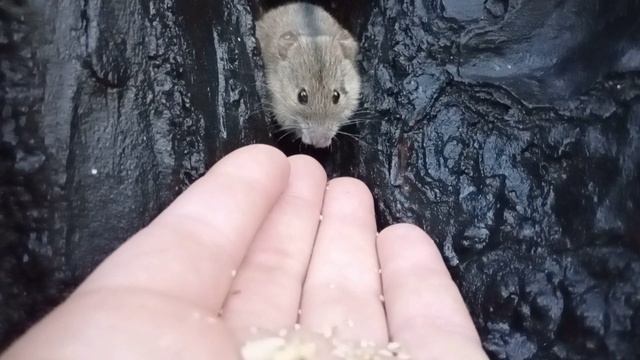 Мышь Рваное Ухо, ест орешки